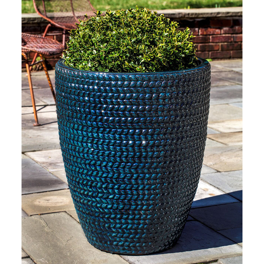 Tall Blue Sisal Weave Terra Cotta Planters Set Of 3 Scenario Home