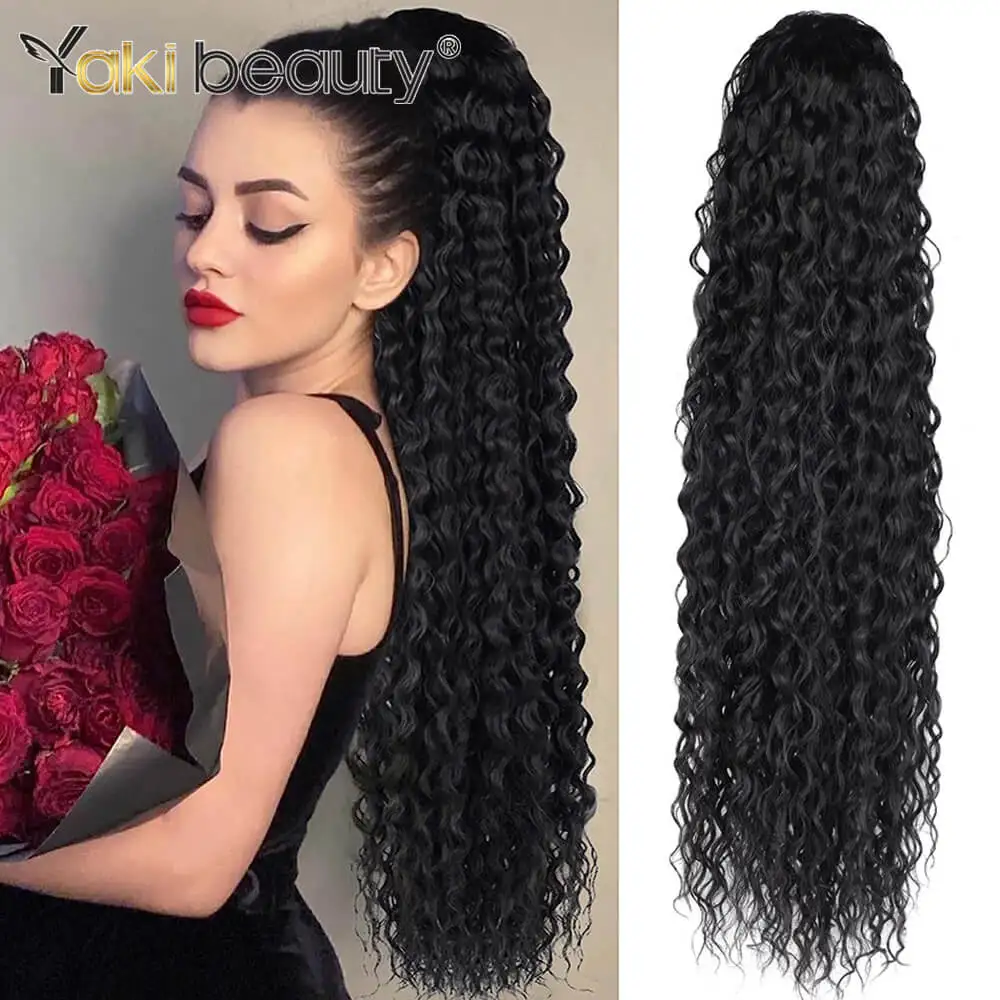 Long Kinky Curly Ponytail Synthetic Drawstring Ponytail 24 30 32inch Chip In Hair Extension Organic Clip In Overhead Ponytail Aliexpress